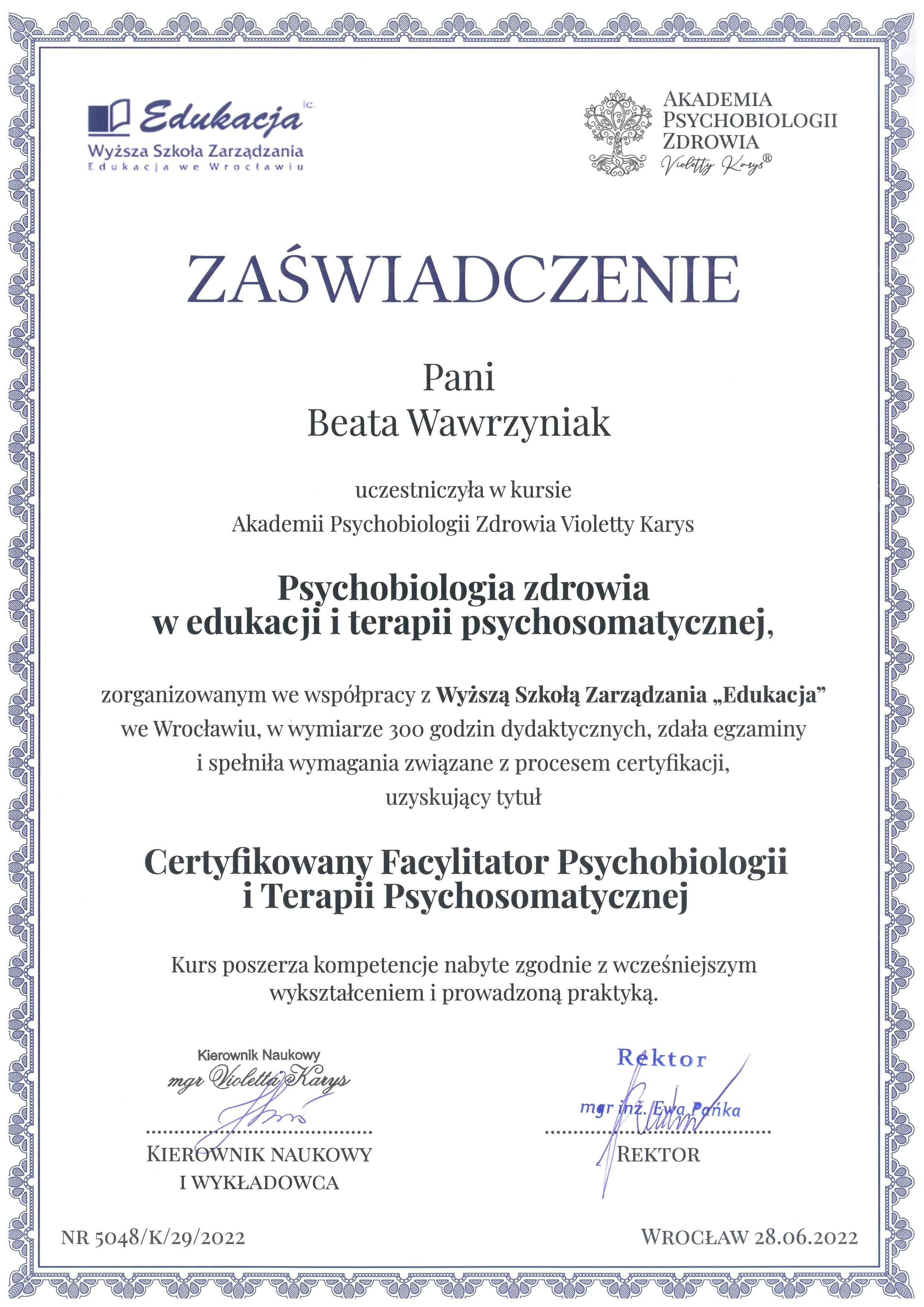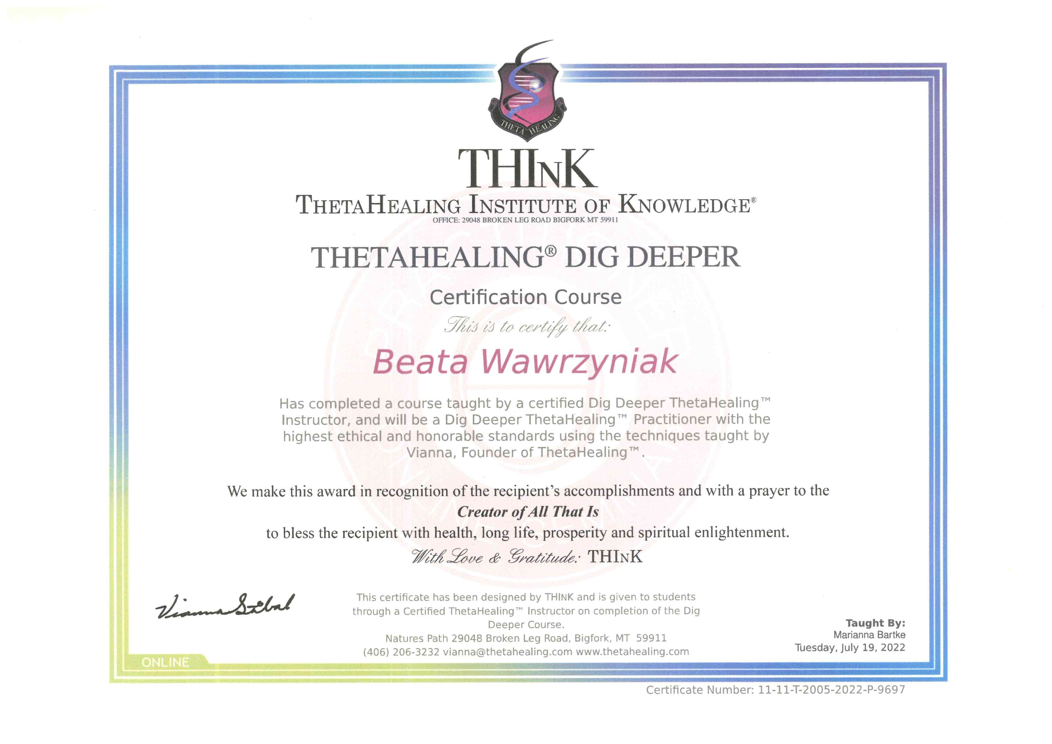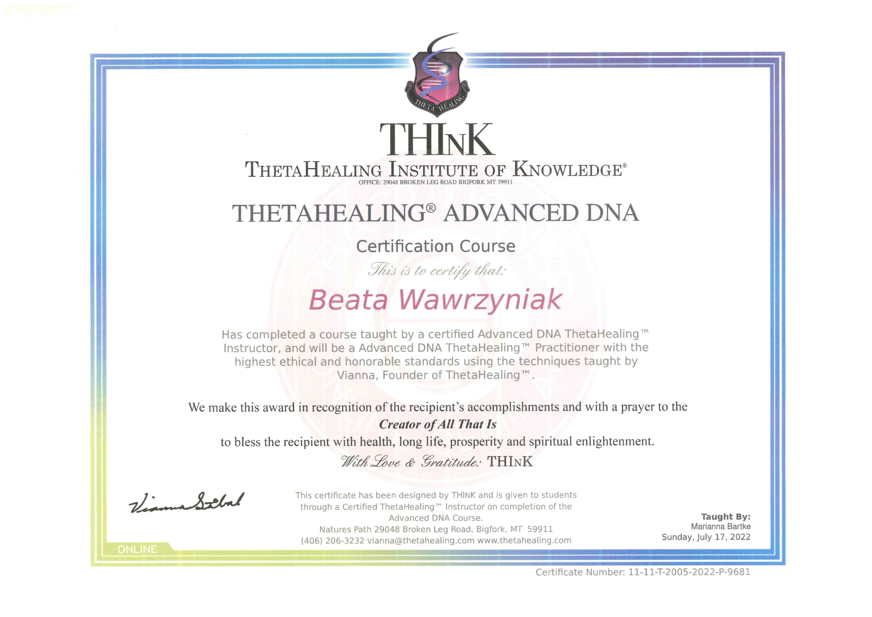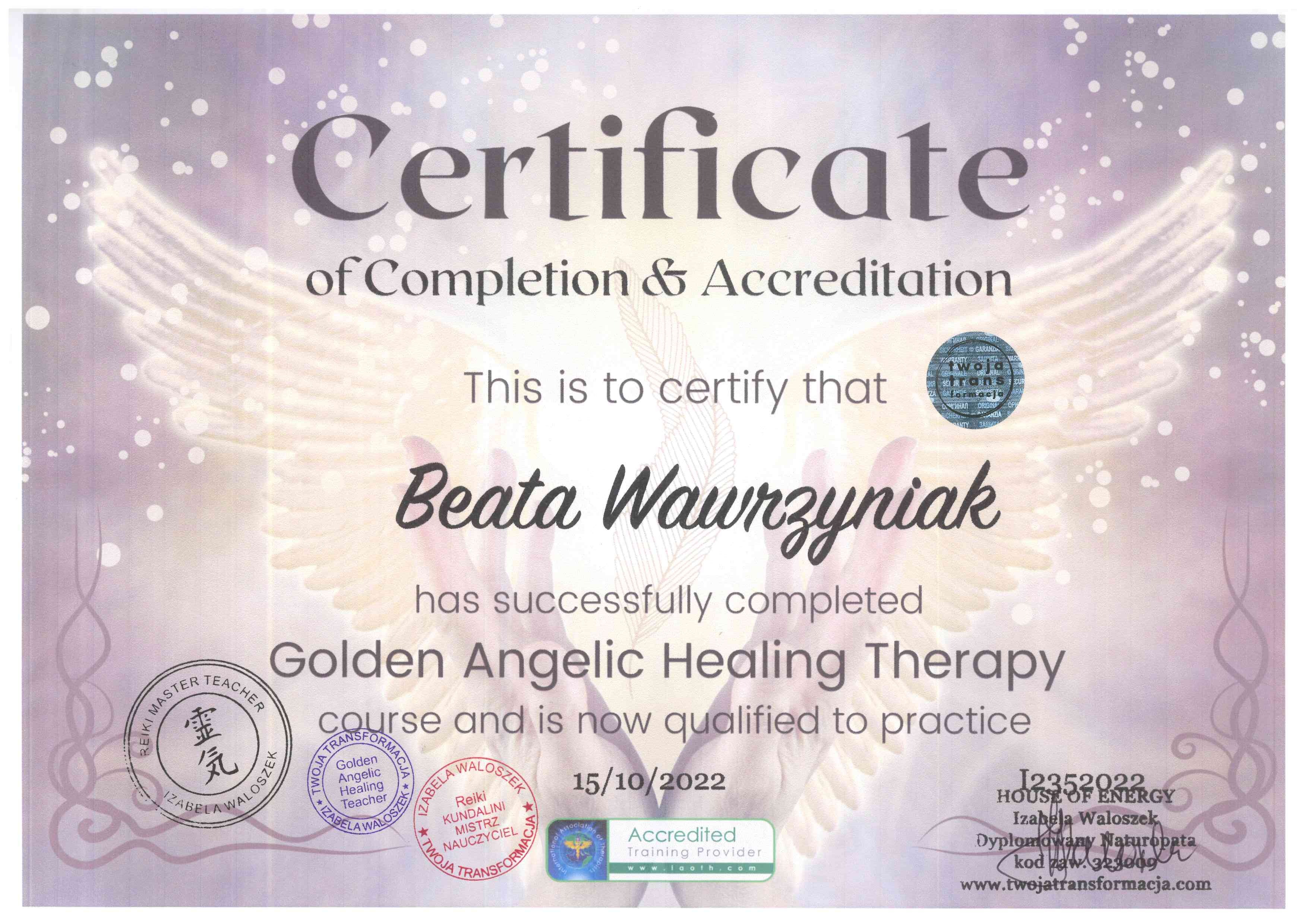 Prowadzę też holistyczne sesje terapeutyczne. Pozwalają one moim Klientom odkrywać potencjalne ograniczenia, które negatywnie wpływają na ich życie i pomagam im je skutecznie przetransformować. Dzięki analizie portretu numerologicznego oraz zastosowaniu specjalistycznych metod pracy z podświadomością i pracy energetycznej, sesja taka pozwoli Ci zidentyfikować w Twojej podświadomości negatywne wzorce i usunąć je, dzięki czemu będziesz mógł poczuć się wolny od ograniczeń i osiągnąć swoje cele. Holistyczne sesje terapeutyczne wspomagam również, jako certyfikowany praktyk, innymi metodami Soul Body Fusion, Psychobiologia oraz Theta Healing©, kwantowe uwalnianie emocji.